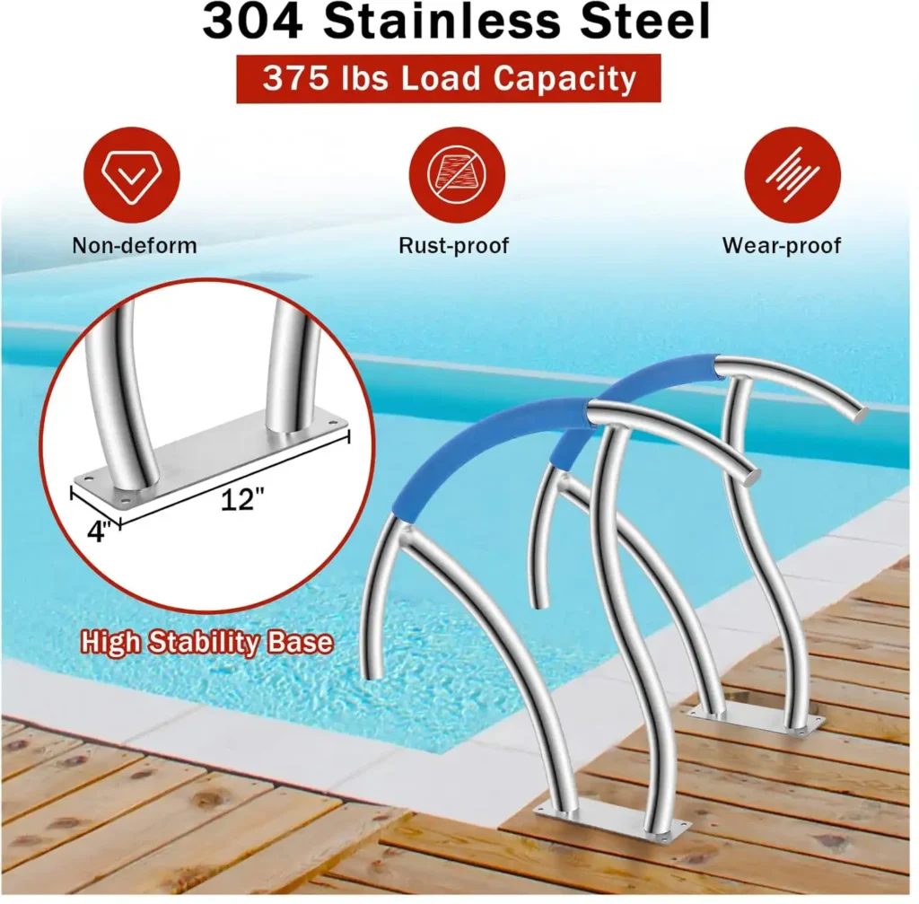- 2-Pack Advantage: Dual rails provide balanced support for wider staircases or multi-entry pools.