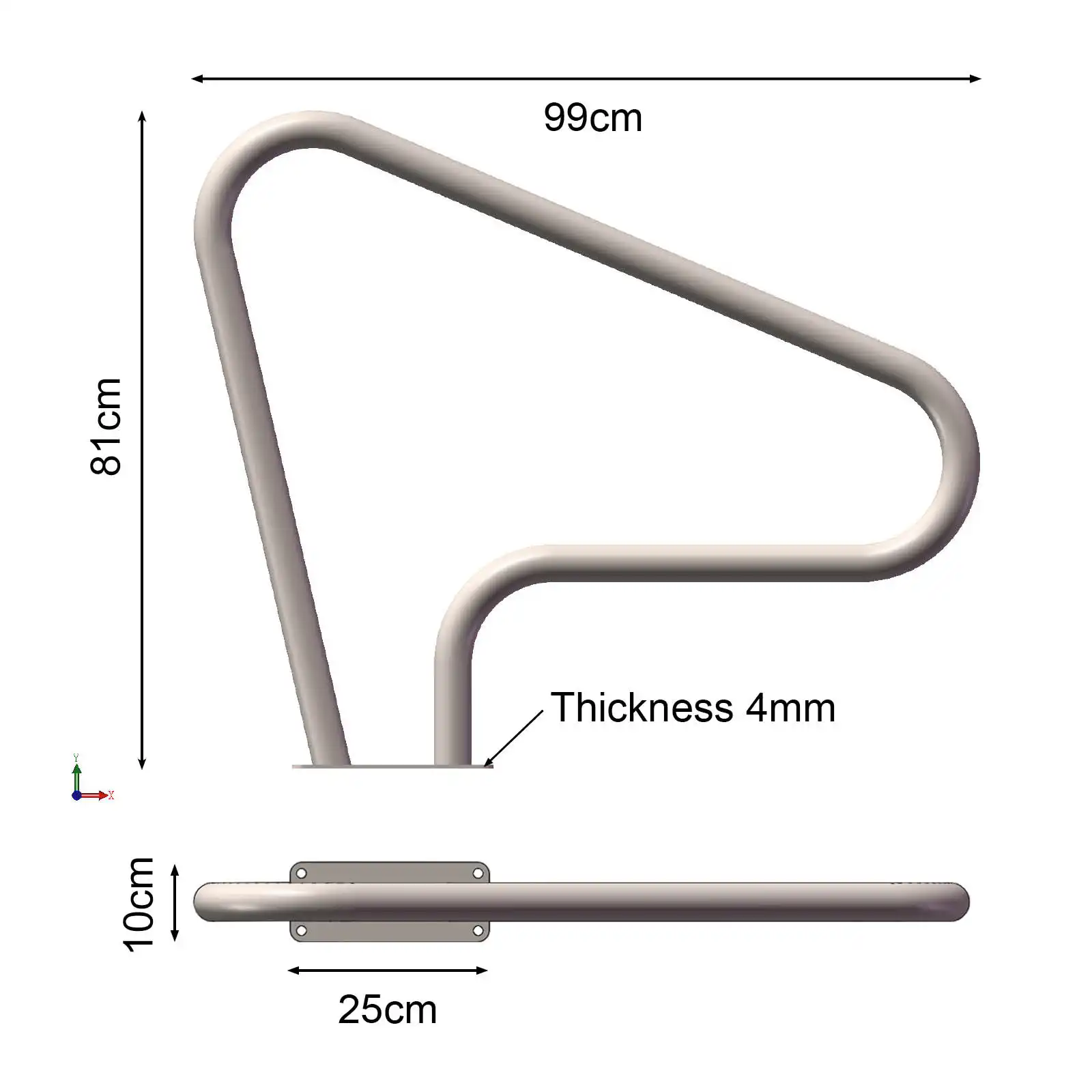 Durable and Reliable: 48mm stainless steel tube, base stainless steel plate welding fixed, higher stability. Pool rail size: 99cm long 81cm wide, Base 25cm*10cm. Capacity: 250 lbs
