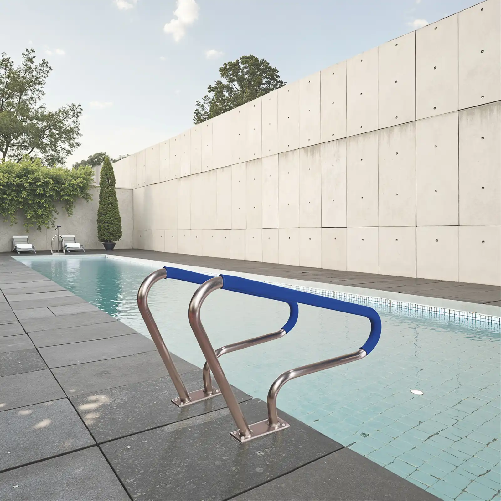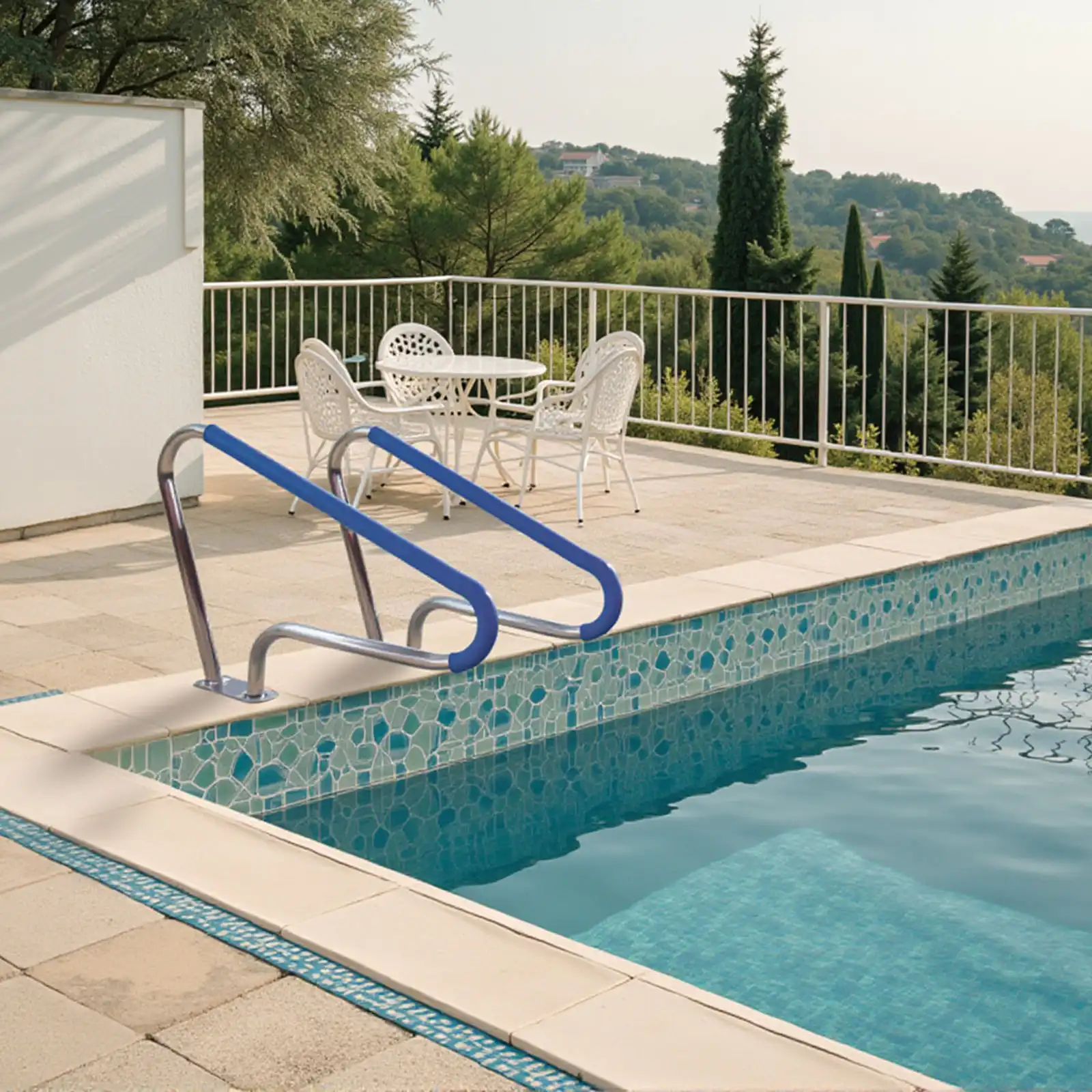 Marin Grade: The pool handrail and base are made of marine grade 316 stainless steel, which is more corrosion resistant than other common stainless steel